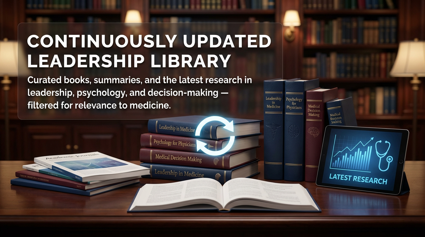 Curated books, summaries, and the latest research in leadership, psychology, and decision-making — filtered for relevance to medicine